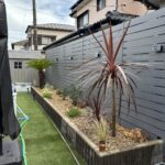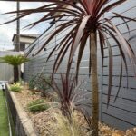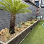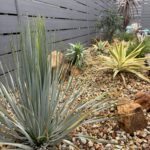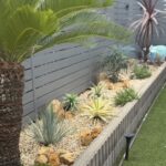 #ドライガーデン#ヤシの木#サボテン#石張りアプローチ#化粧ブロック